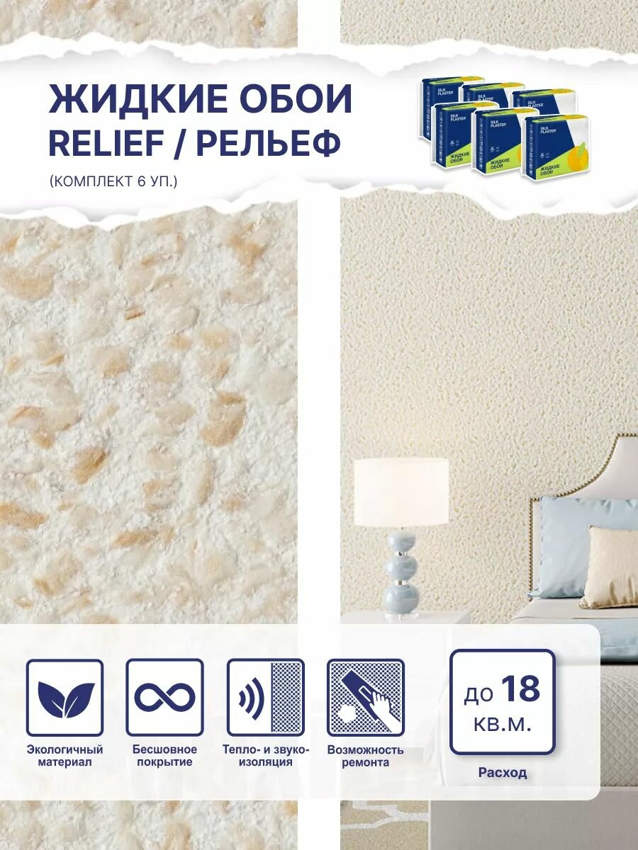 10 цен на Жидкие обои Silk Plaster Рельеф 325, комплект 6 шт (до 18 кв. м) бежевый