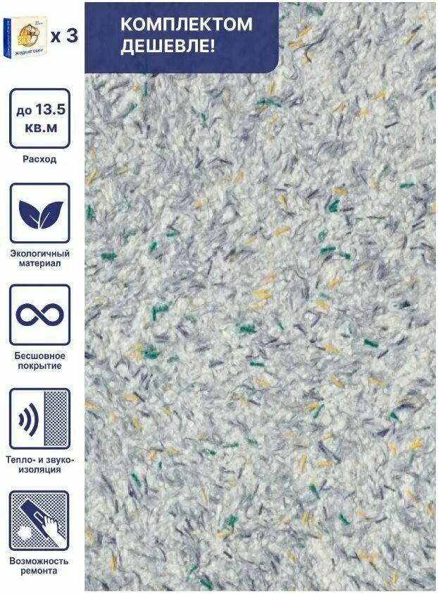 Жидкие обои Silk Plaster Стандарт 020, комплект 3 шт (до 13,5 кв. м) синий с серым информация: