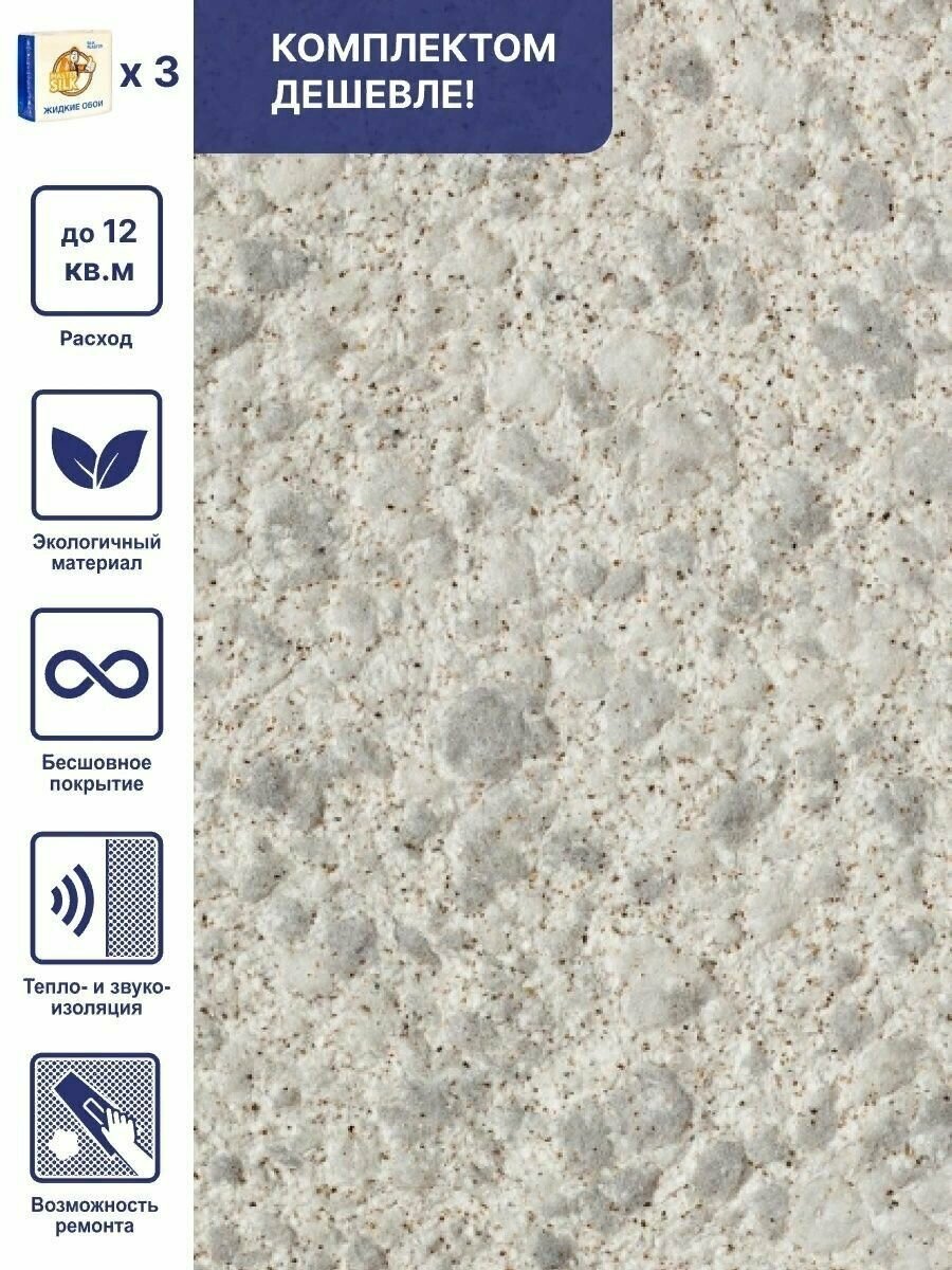 Жидкие обои Виктория 703, комплект-3шт (до 10.5кв. м), серый информация: