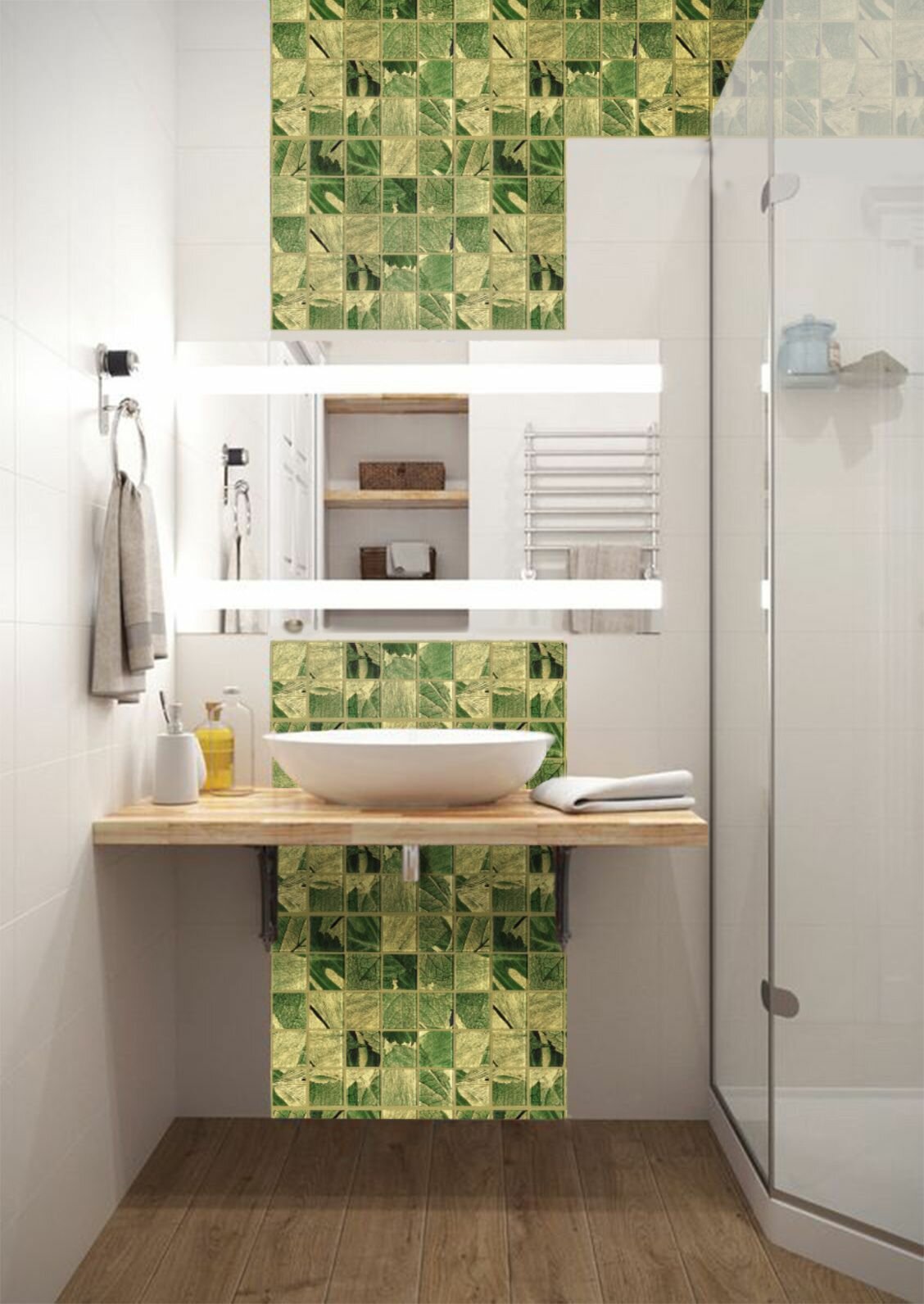 Мозаика Alma NB-GN425 из глянцевого цветного стекла размер 29.5х29.5 см чип 15x15 мм толщ. 4 мм площадь 0.087 м2 на бумаге