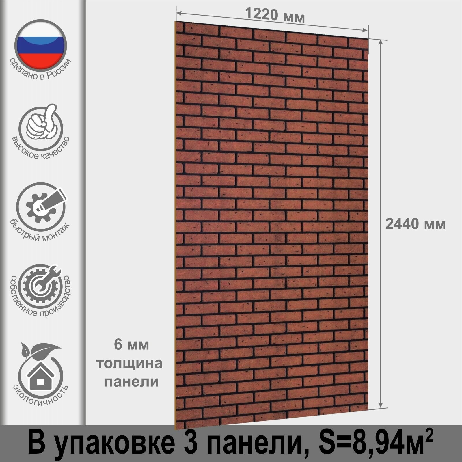 Панель МДФ кирпич красный обожженный 2440х1220х6 мм Стильный Дом 2,977 кв. м (v41245) информация: