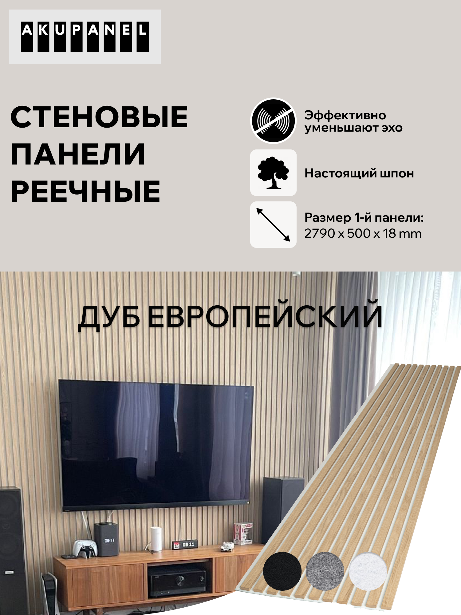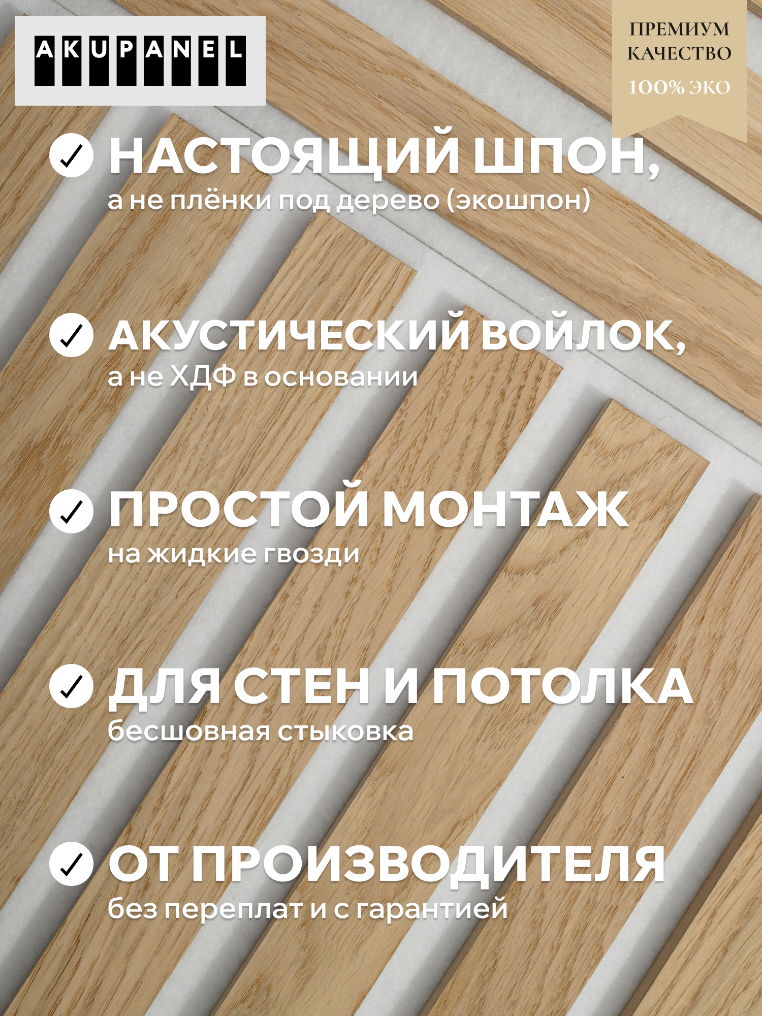 10 цен на Акустическая реечная панель AKUPANEL - Декоративные рейки (Дуб Шпон) и белая акустическая панель Акупанель