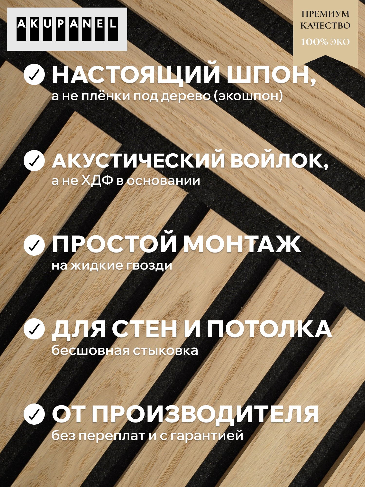 10 цен на Акустическая реечная панель AKUPANEL - Декоративные рейки (Дуб Шпон) и чёрная акустическая панель Акупанель