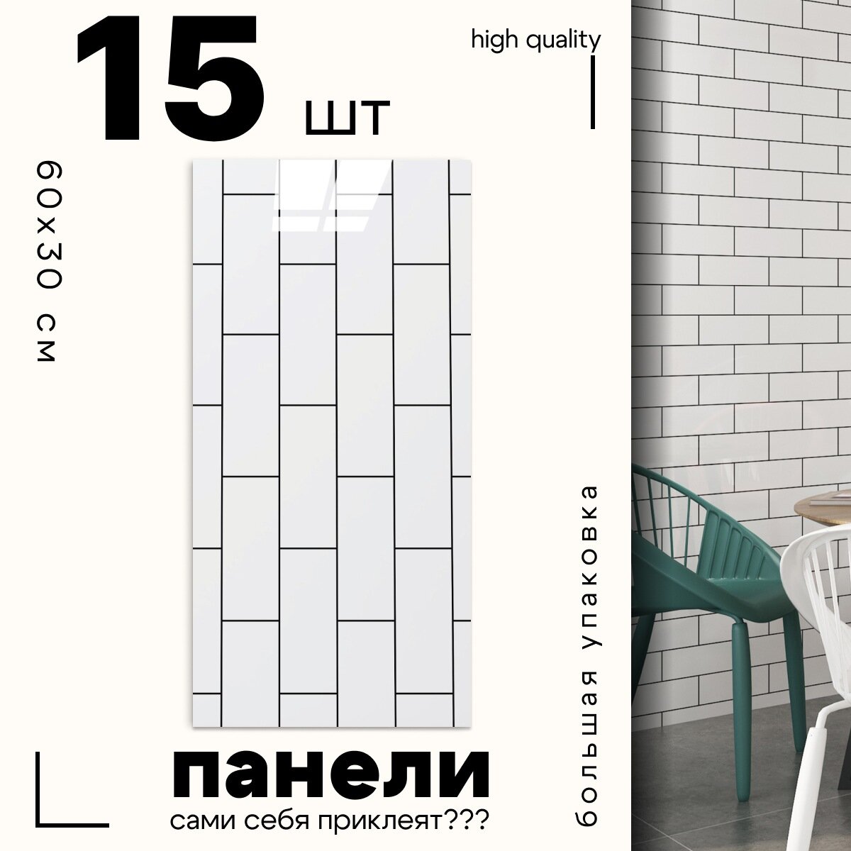 Отзывы на Самоклеящиеся панели стеновые "Катри", Белые кирпичики, 30x60см, 18шт, 3.24м2