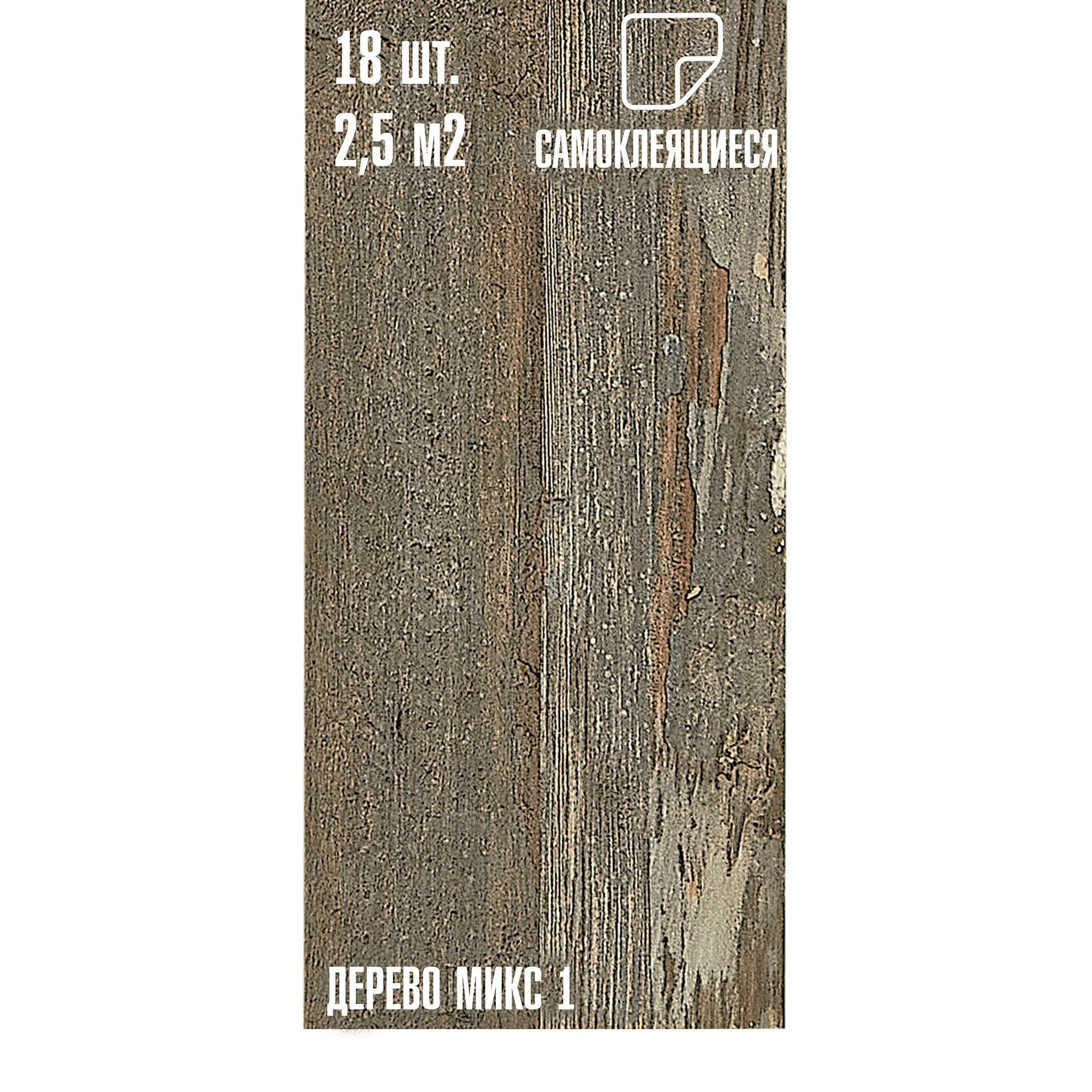 Комплект 18 шт. Самоклеящейся ПВХ плитки LAKO DECOR "Состаренное дерево", толщина 2мм, 2.51м²