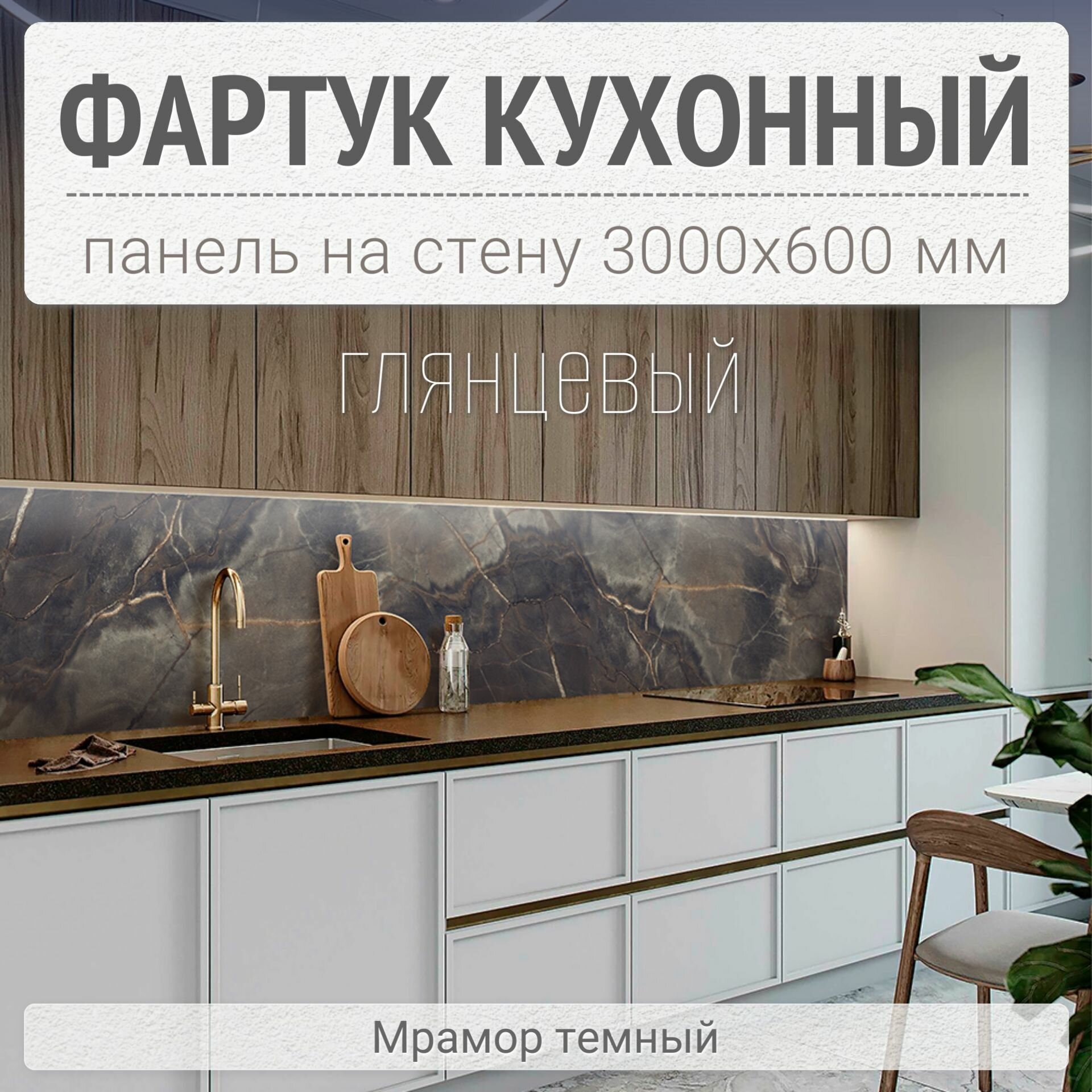10 цен на Фартук для кухни на стену 3000х600 мм, Мрамор темный