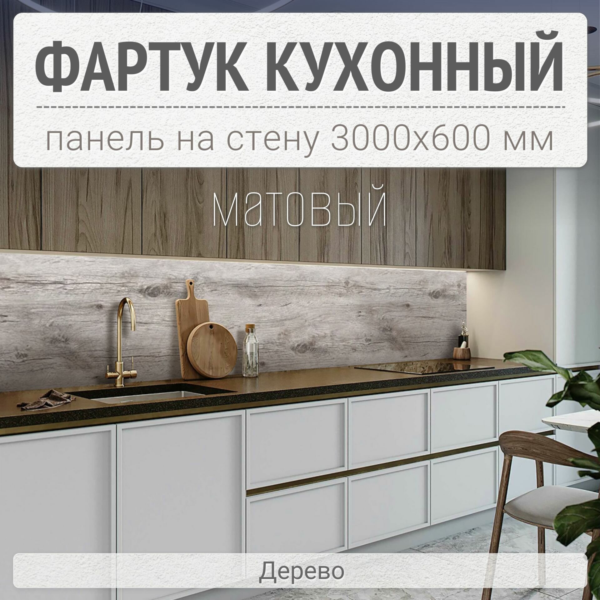 Фартук для кухни на стену 3000х600 мм, матовый Дерево. Панель стеновая ПВХ влагостойкая декоративная информация: