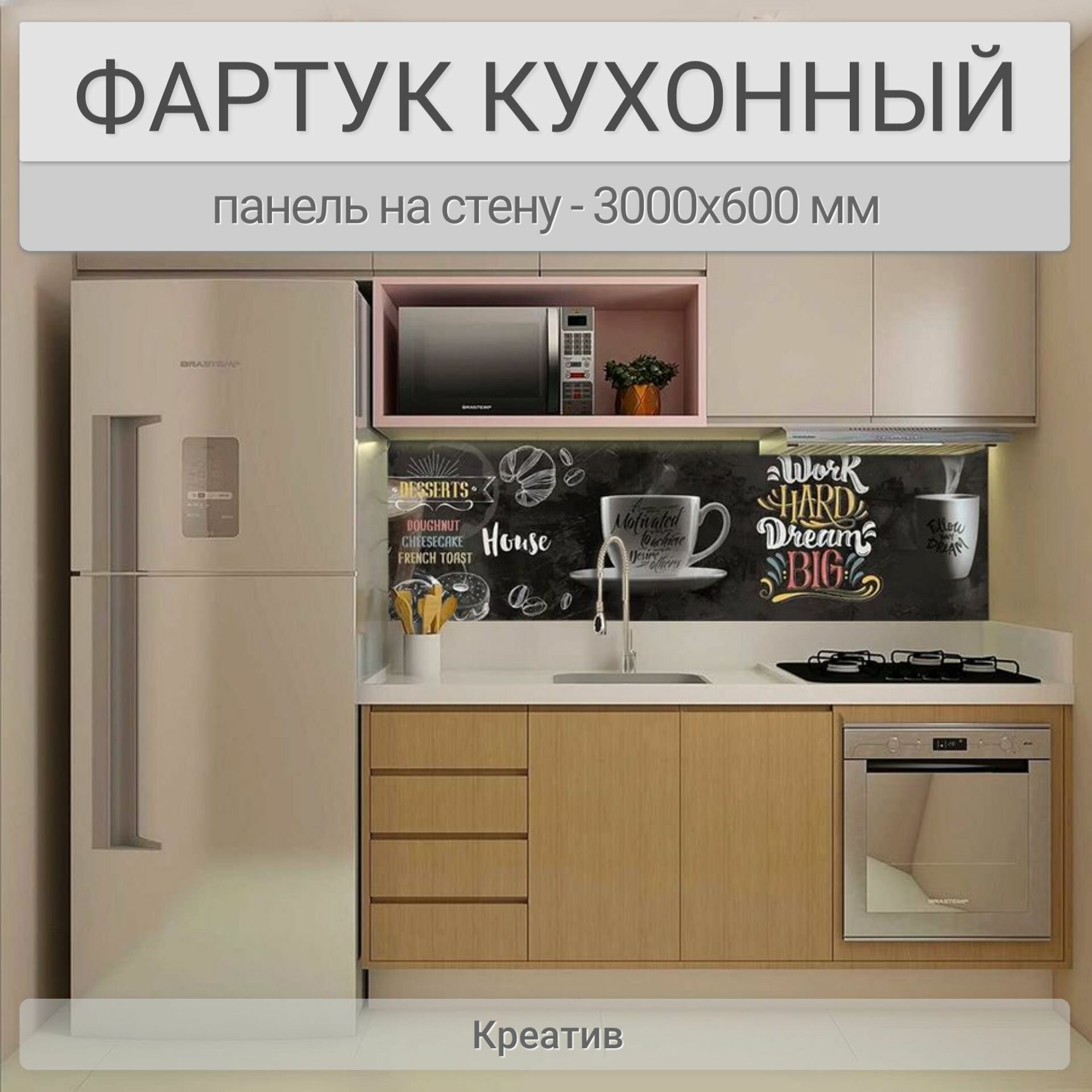 10 цен на Фартук для кухни на стену 3000х600 мм, матовый Креатив. Панель стеновая ПВХ влагостойкая декоративная