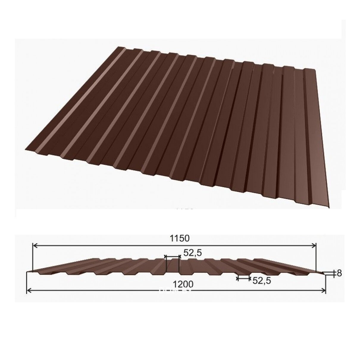 Профнастил Металл Профиль С-8 коричневый 0.35х1200х2000 мм для кровли, фасада, забора информация: