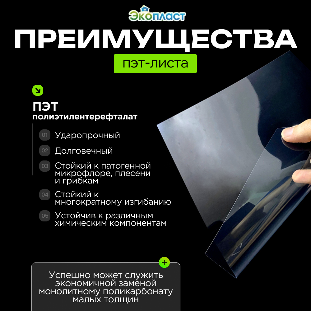 ПЭТ-лист ЭкоПласт, прозрачный, бесцветный, 0,96х48 м, толщина 0,3 мм. Пластик Листовой информация: