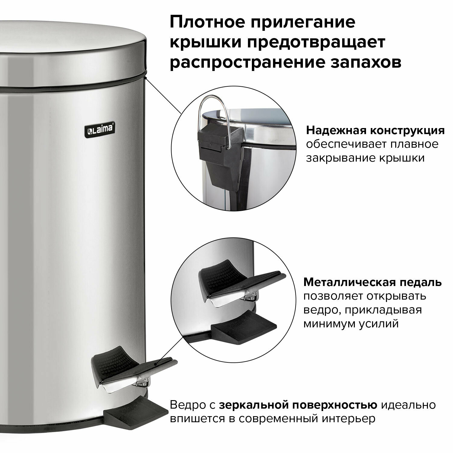 Отзывы на Ведро мусорное (урна) с педалью LAIMA "Classic", 12 л, зеркальное, нержав. сталь, со съемным внутренним ведром, 232261