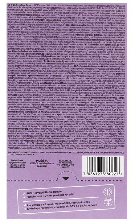 | Дополнительная информация | ручка из переработанного пластика и перерабатываемая упаковка; увлажняющая полоска c алоэ вера и кокосовым молочком |