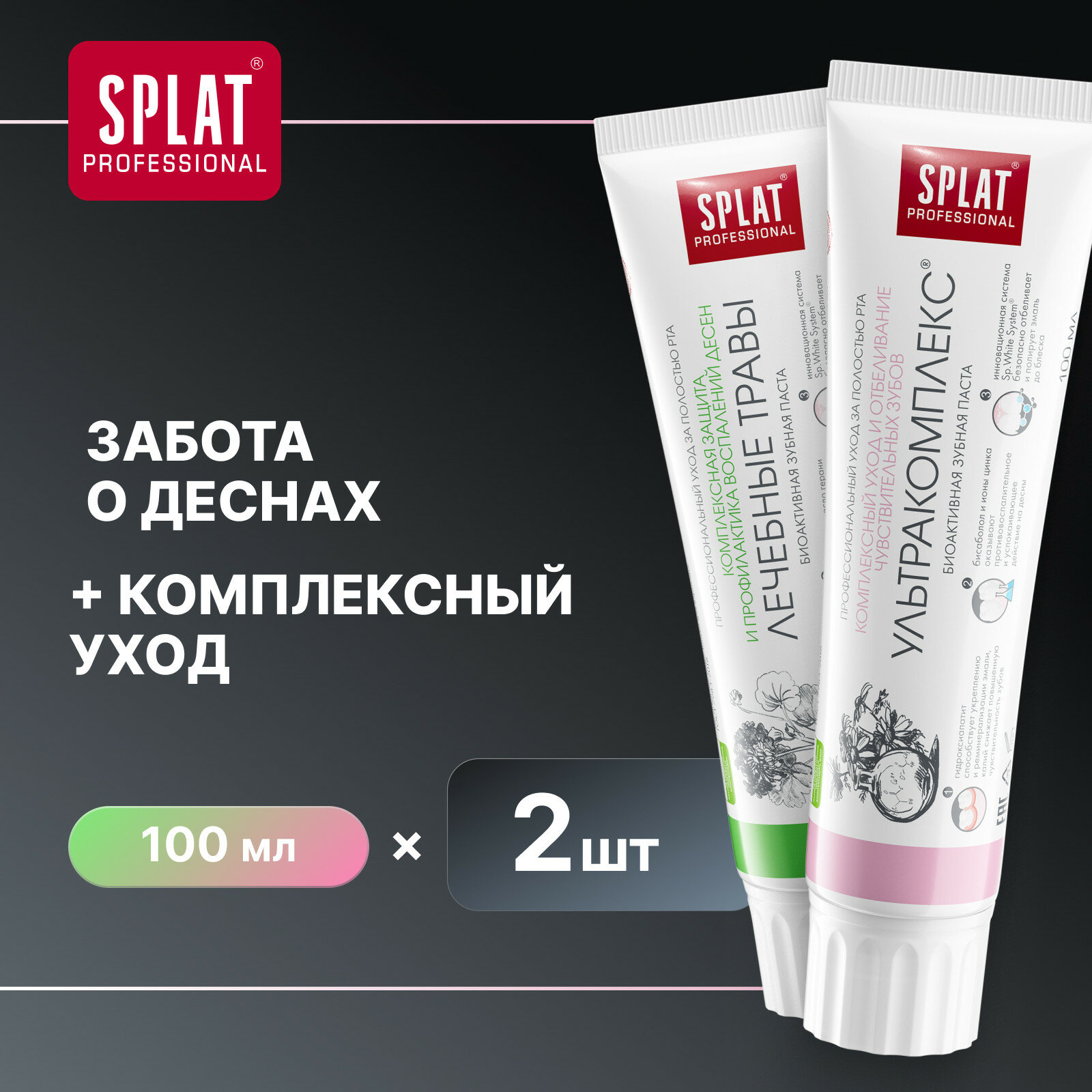 Зубная паста SPLAT Ультракомплекс и Лечебные травы, 100 мл, 2 шт информация:
