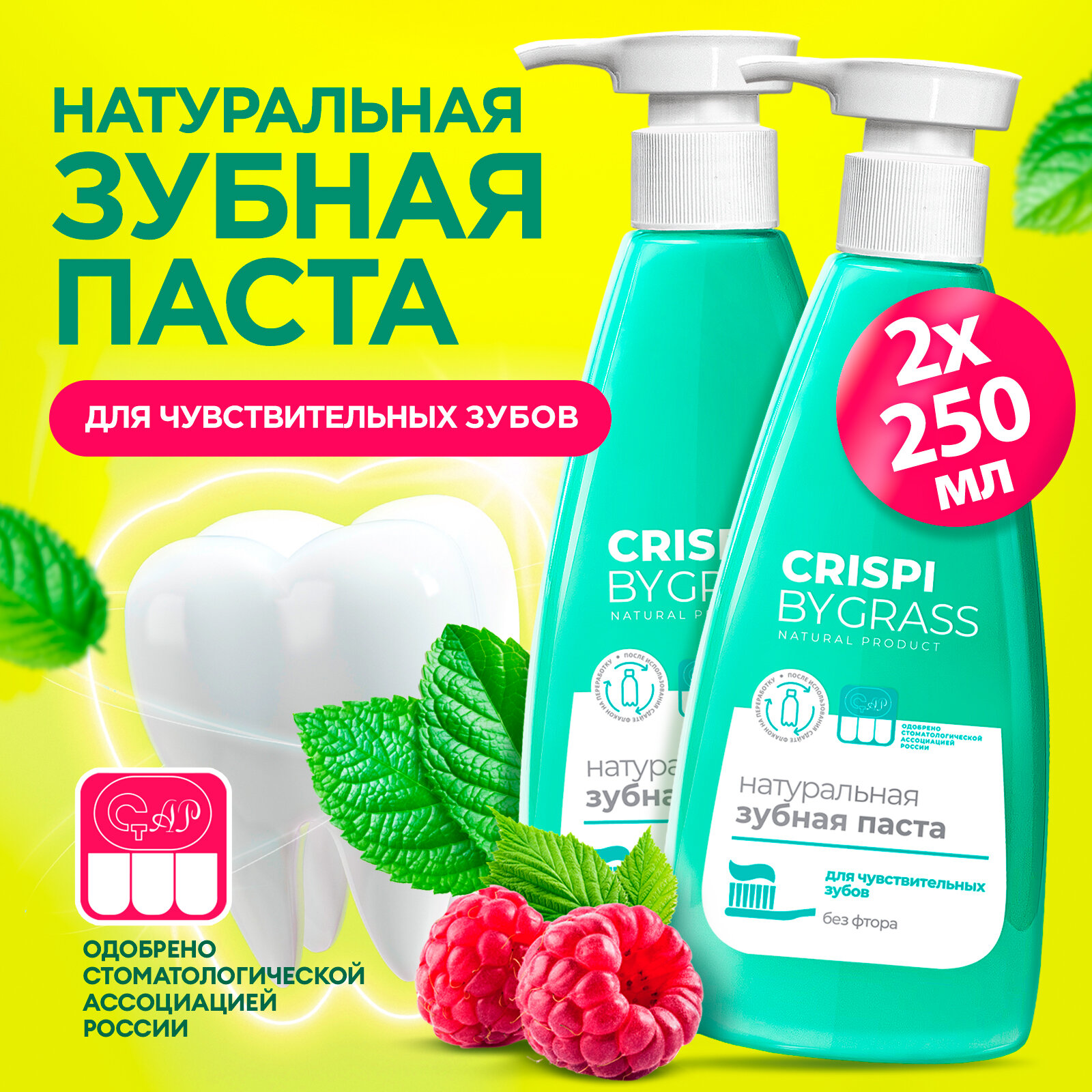 Набор зубных паст Grass Crispi с дозатором для чувствительных зубов, 2 штуки по 250 мл. информация: