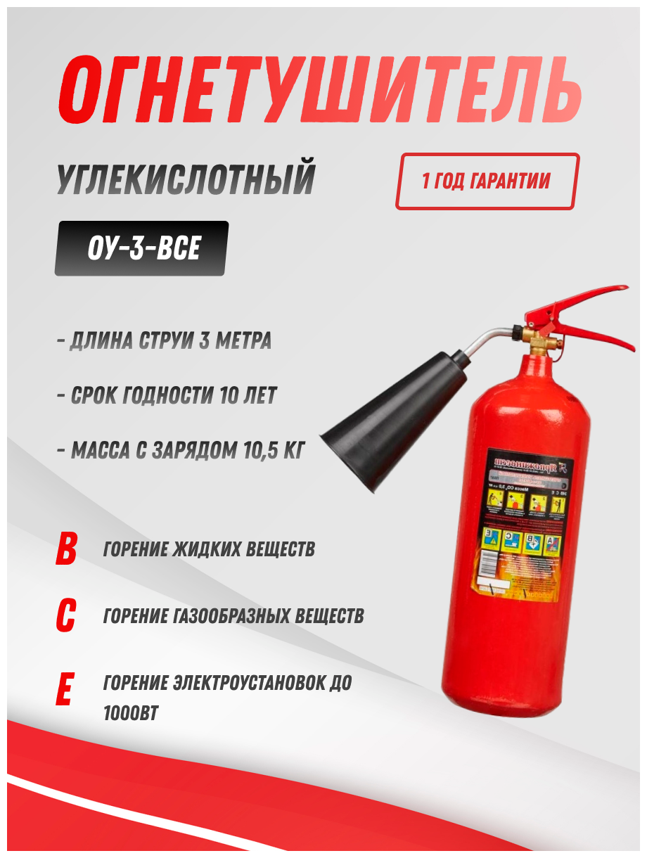 Отзывы на Огнетушитель углекислотный ОУ-3 (Ярпожинвест), ручной, цвет красный