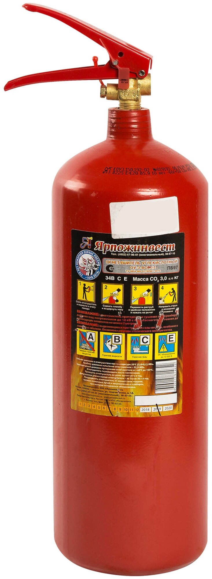 Огнетушитель углекислотный ОУ-3 (Ярпожинвест), ручной, цвет красный информация: