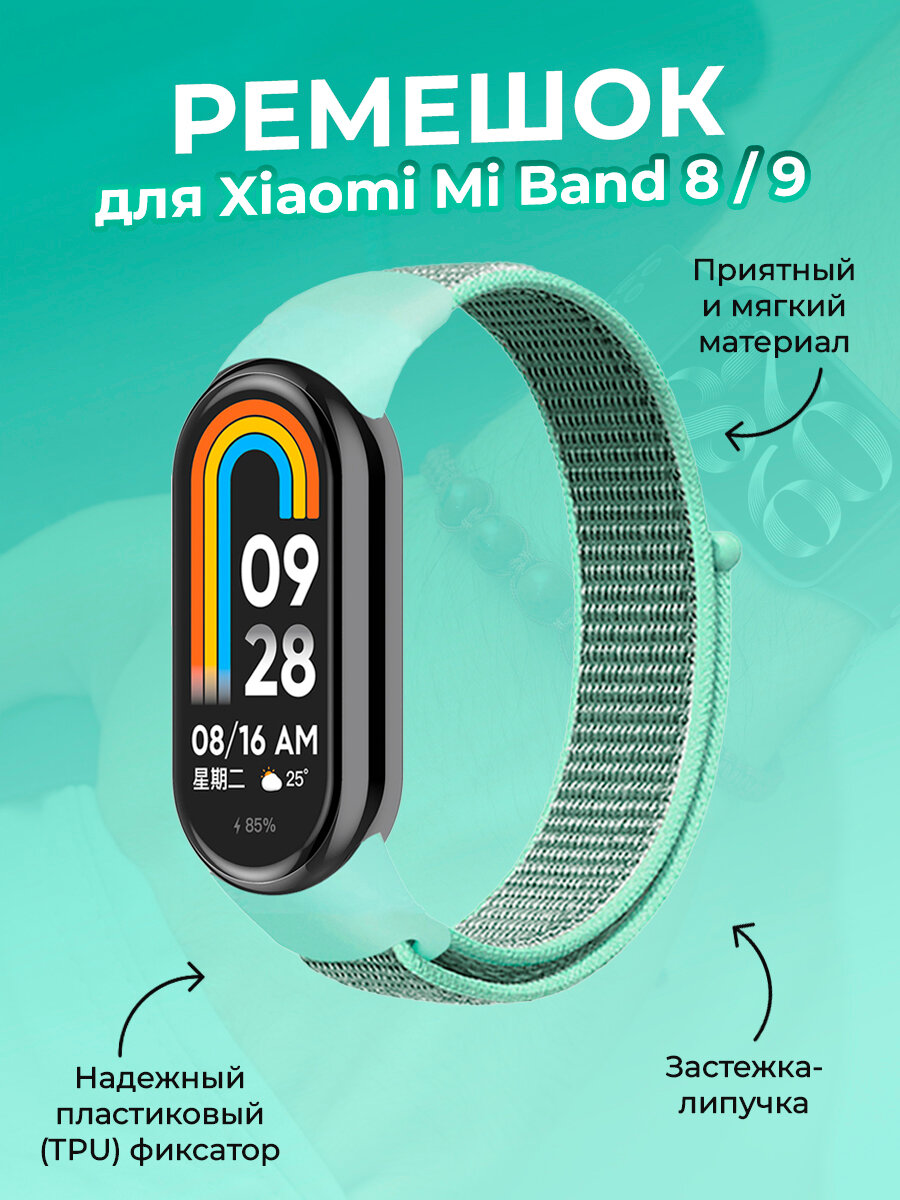 Ремешок с нейлоновой петлей на липучке для Xiaomi Mi Band 8 / 9, чайно-зеленый информация: