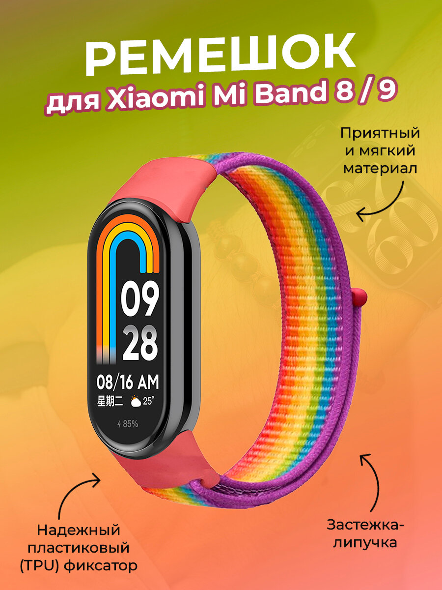 Ремешок с нейлоновой петлей на липучке для Xiaomi Mi Band 8 / 9, цвет радуги информация: