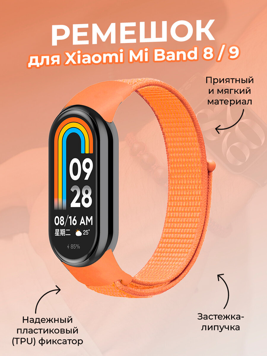 Ремешок с нейлоновой петлей на липучке для Xiaomi Mi Band 8 / 9, цвет папайи информация: