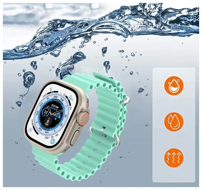 10 цен на Ремешок SALS Ocean Band, для Apple Watch 42-44-45-49mm, силиконовый, бирюзовый, 49мм