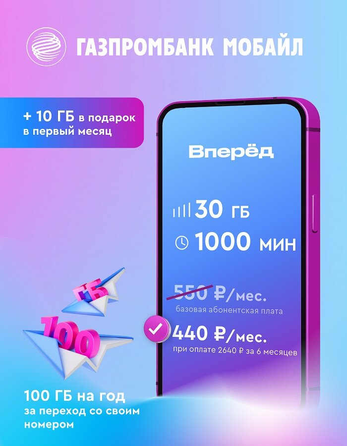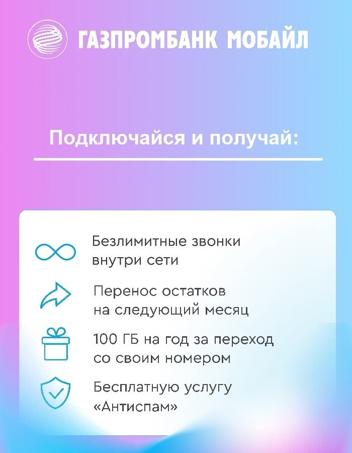 Сим карта Газпромбанк Мобайл 300 руб на балансе и скидкой за оплату 6 мес. информация: