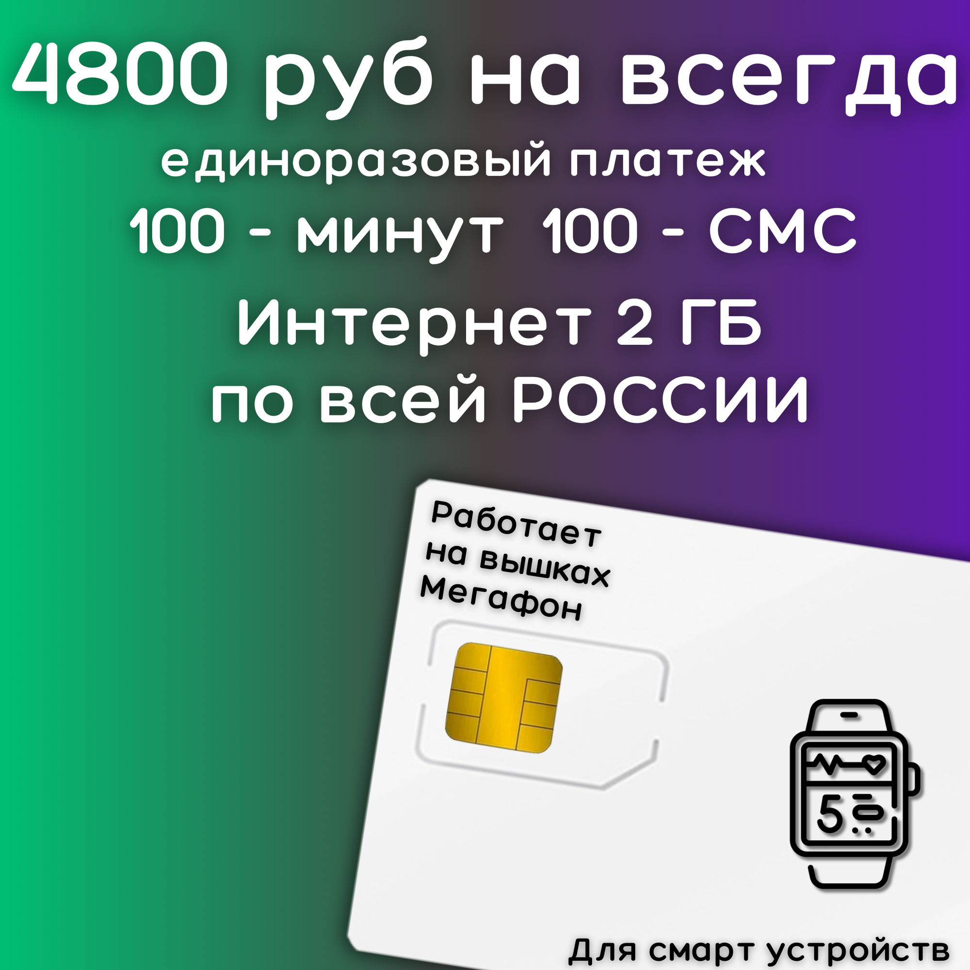 Сим карта интернет для смарт часов и умных устройств 200 р\м \ 1600 в год \ 4800 руб - НАВСЕГДА 4G LTE YAMEGV2 информация: