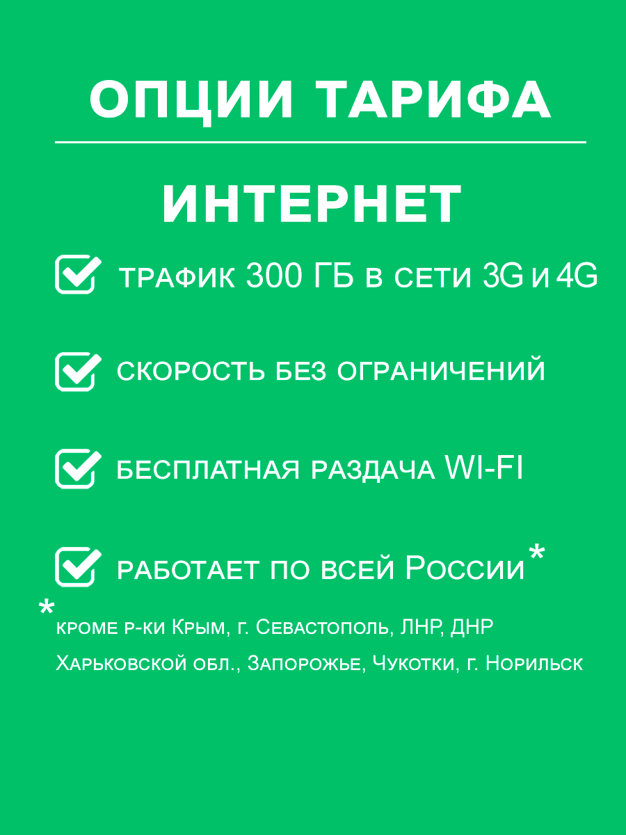 Сим карта 300гб интернета 4G по России за 900, для роутера/модема информация:
