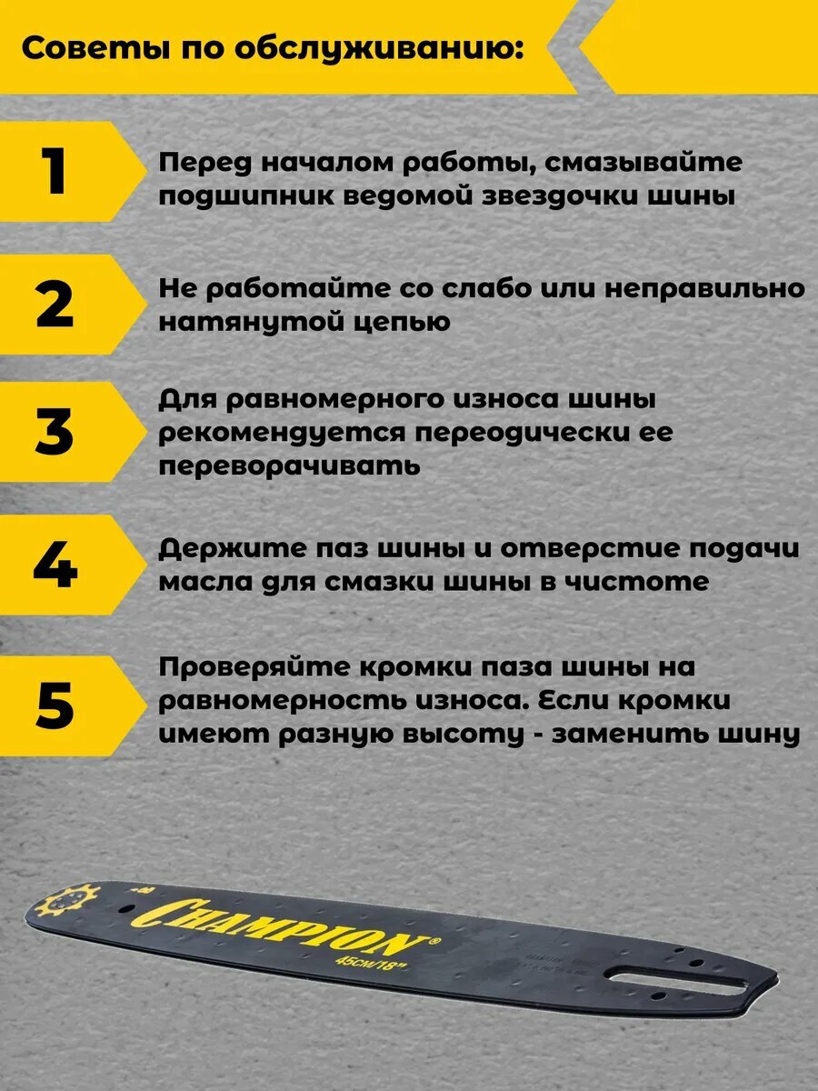 Шина Champion 952936, для пильной цепи, 0,325", 64 звена 799 ₽