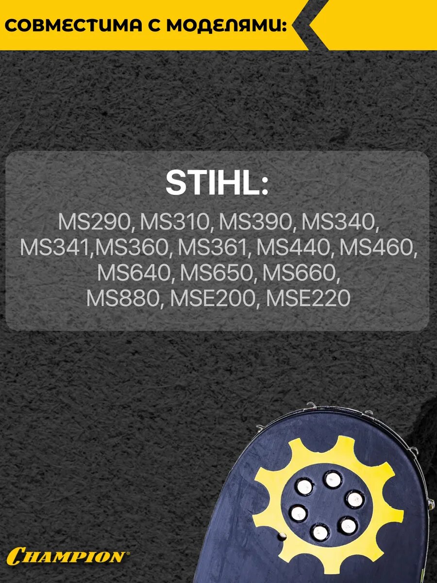 | Совместимость | CHAMPION 242, 341, 335, 345, 216, 318, 420, 422; ECHO CS-353ES, CS-350TES, CS-3500, CS-352, CS-350WES; SHINDAIWA 305S, 352S; HUSQVARNA 236; OLEO-MAC-OLYMPIC 931, 932; PARTNER 350, 351, 352, 371; POULAN 1800, 2000, MICRO25, S25CVA; HITACHI CS280A(B), CS350A(B), CS35B; MAKITA DCS330S, DCS350, DCS390, DCS400, DCS380, UCS3501, UCS3520A; HOMMELITE 3300, 3350, 3550, 3335, 4500; MC CULLOCH 335, 435, 440, 441, 738; EFCO 131,132, 125, 3600, 4000 |