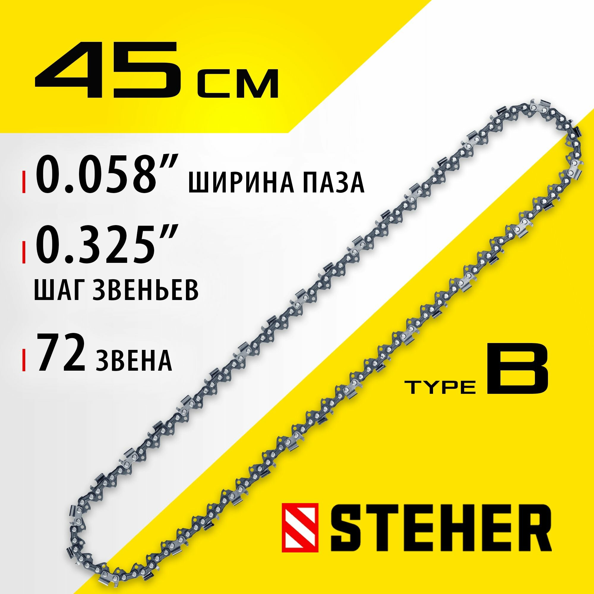 Цепь для бензопилы STEHER type B, шаг 0.325", паз 1.5 мм, 72 звена информация: