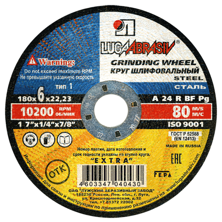 Круг отрезной 41 180х6х22 A 24 R BF 80 Луга Абразив информация: