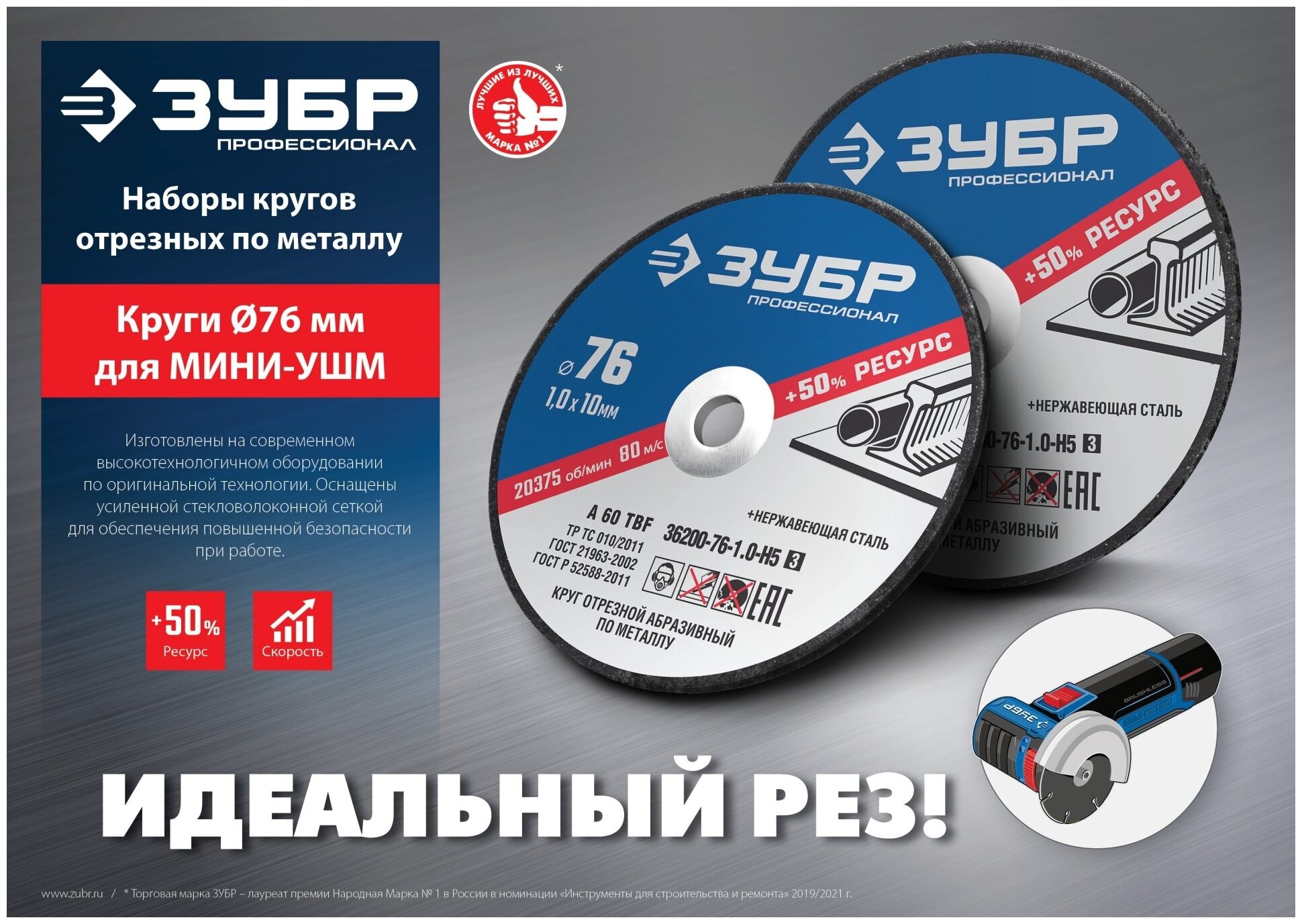 Отзывы на Набор 5 шт: Круги отрезные ″X-2″ по металлу 76х1,2х10 мм, ЗУБР, 36200-76-1.2-H5