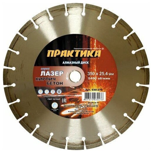 Диск алмазный турбосегментный Эксперт-Бетон (350х25.4 мм; сегмент 10 мм) ПРАКТИКА 030-276 информация: