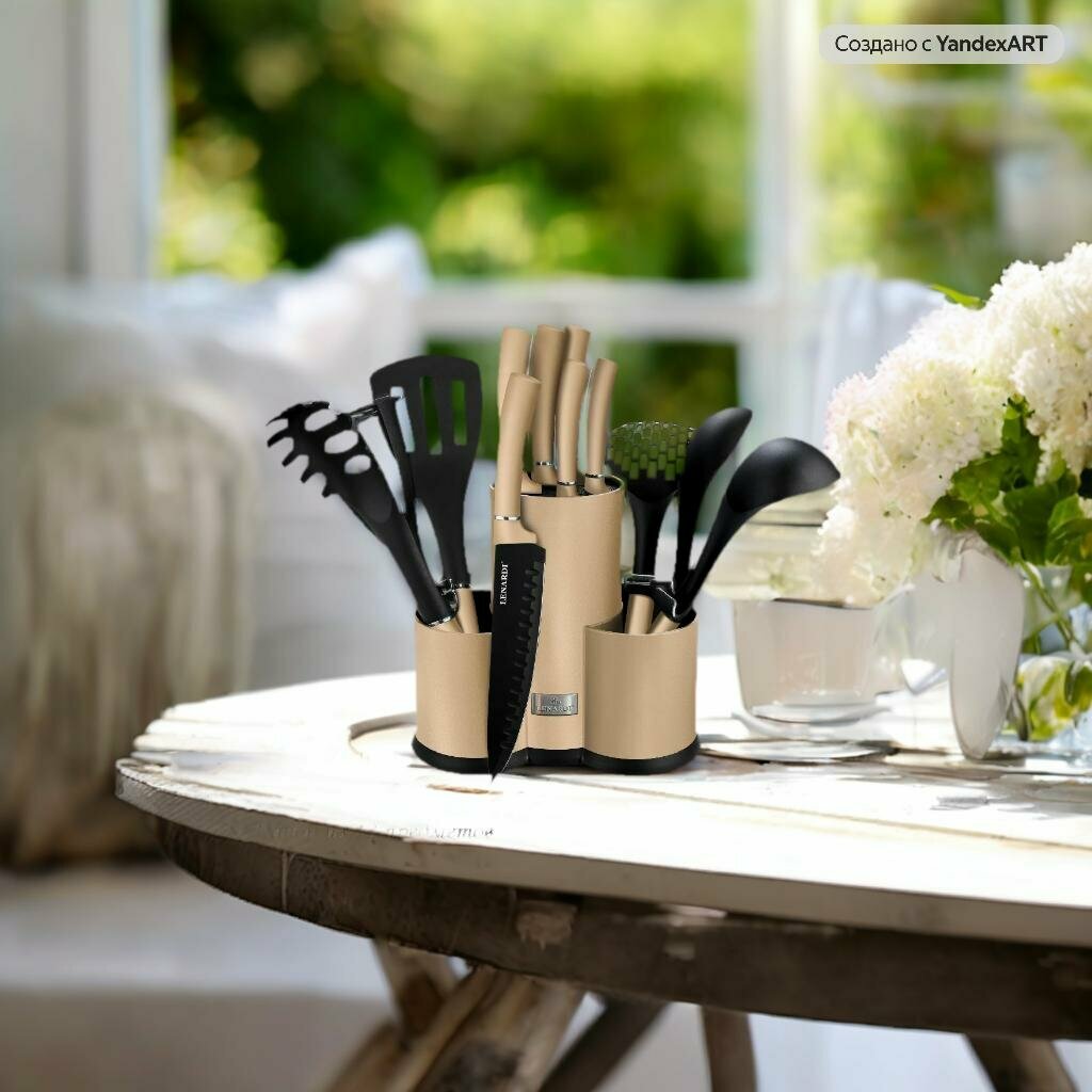 10 цен на Набор ножей и кухонных принадлежностей 12 пр. на подставке Lenardi (183587)