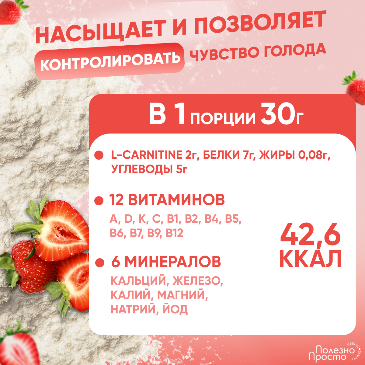 10 цен на Протеиновый коктейль Полезно Просто, коктейль для похудения с л карнитином, молочный коктейль со вкусом клубники