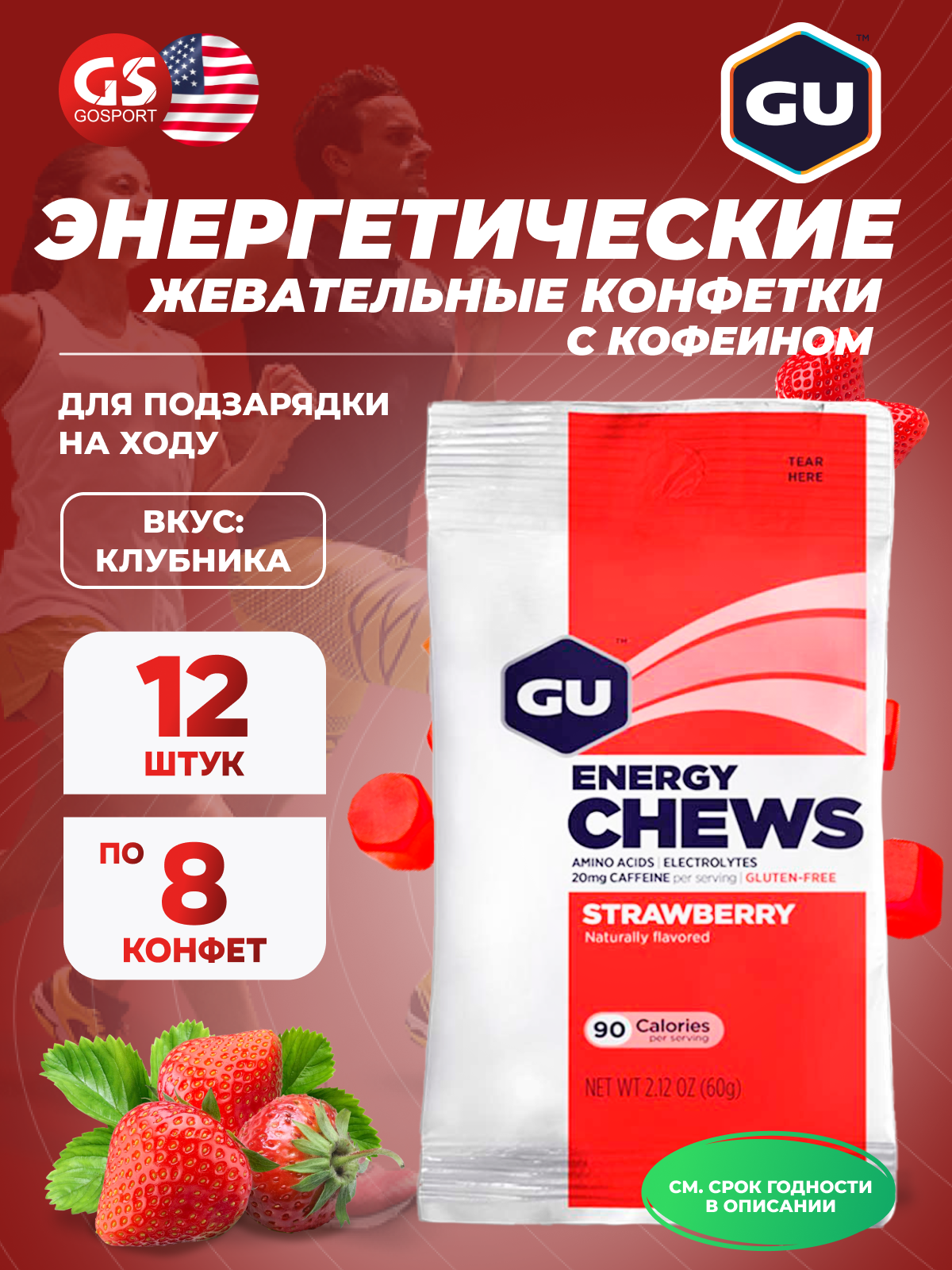 Конфетки GU ENERGY Мармеладки GU Energy Chews 12 x 60 г, Клубника информация: