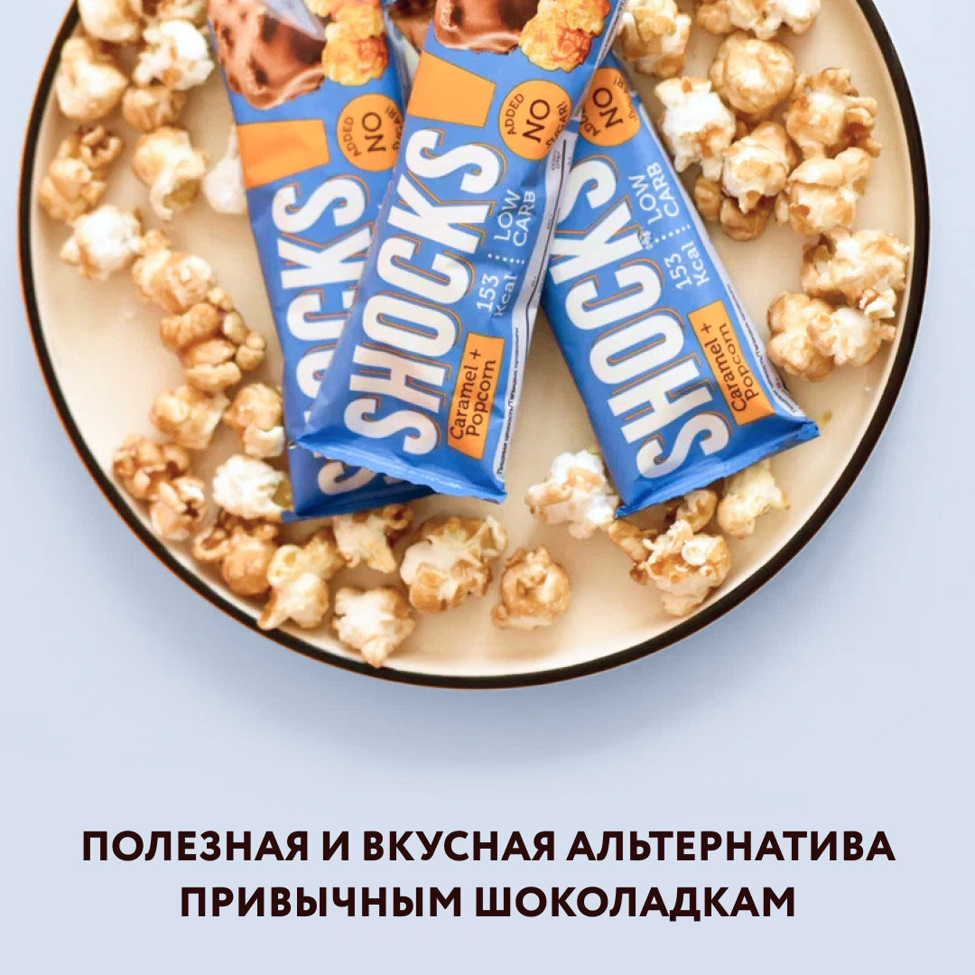 10 цен на Батончики без сахара SHOCKS! Карамельный попкорн 35 г, 12 шт