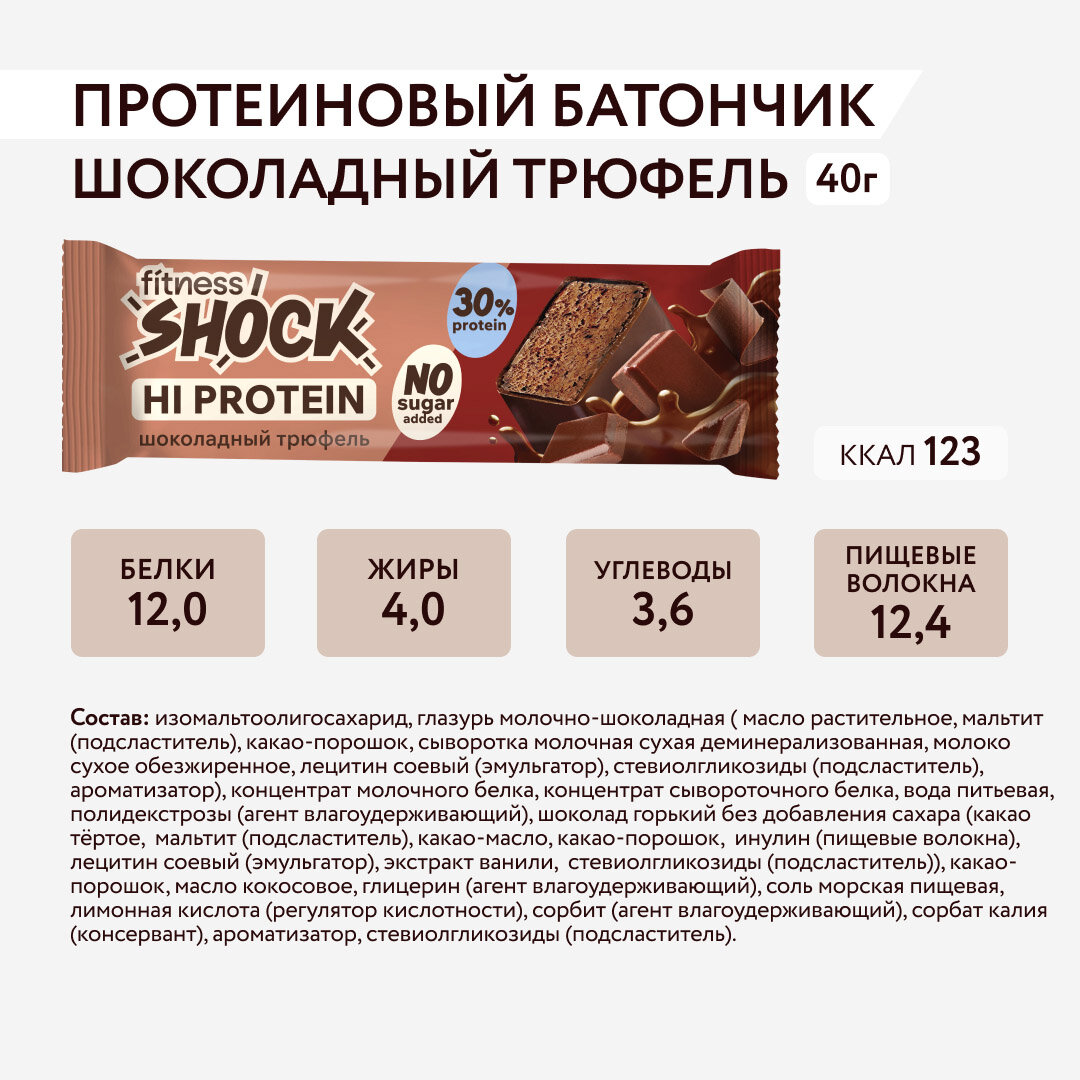 10 цен на Батончики протеиновые COCKTAIL TopLess Шоколадный трюфель (шоколад и ром) FitnesSHOCK без сахара 40гр 12 шт