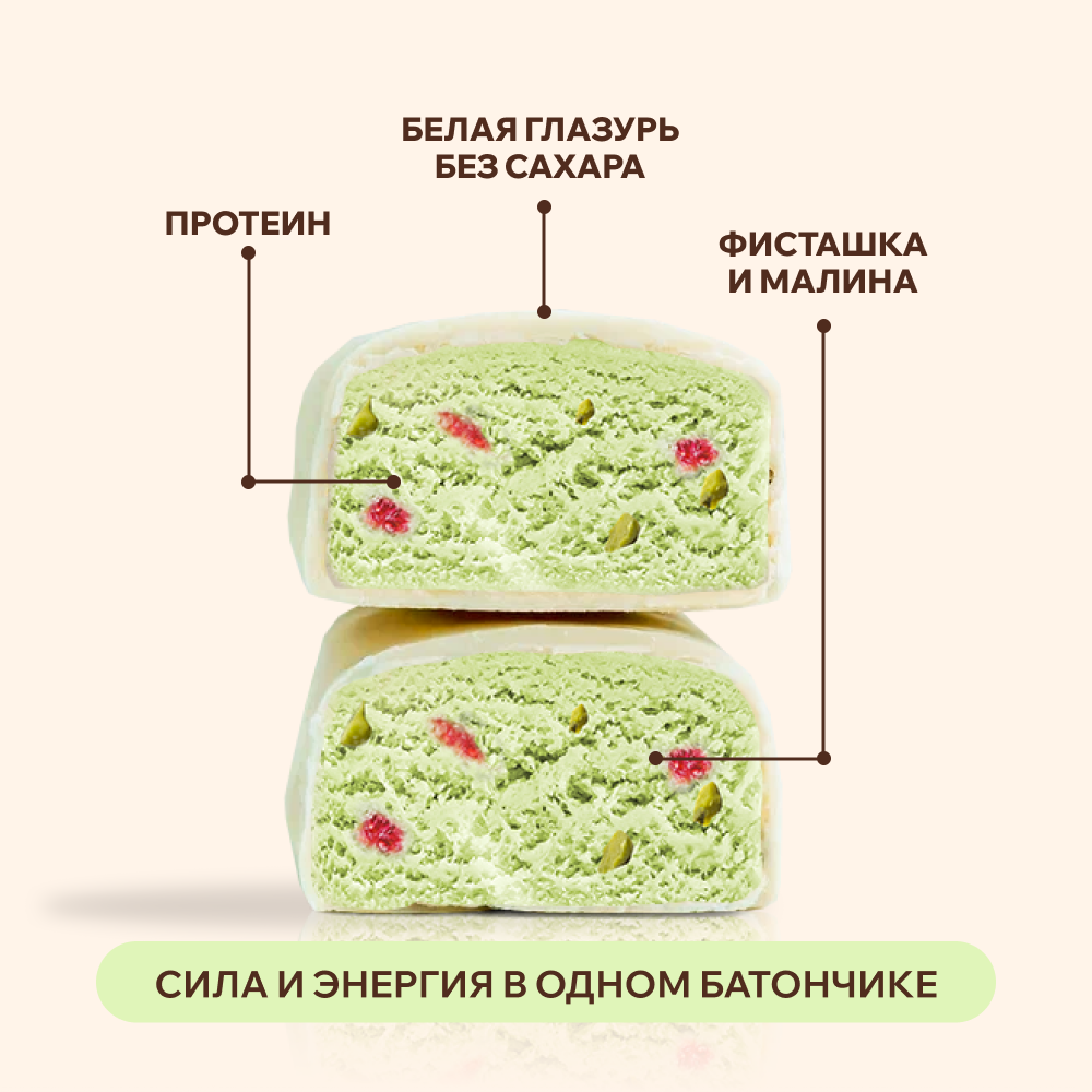 Протеиновые батончики без сахара "Фисташка и малина" FitnesSHOCK 40г х 12шт информация: