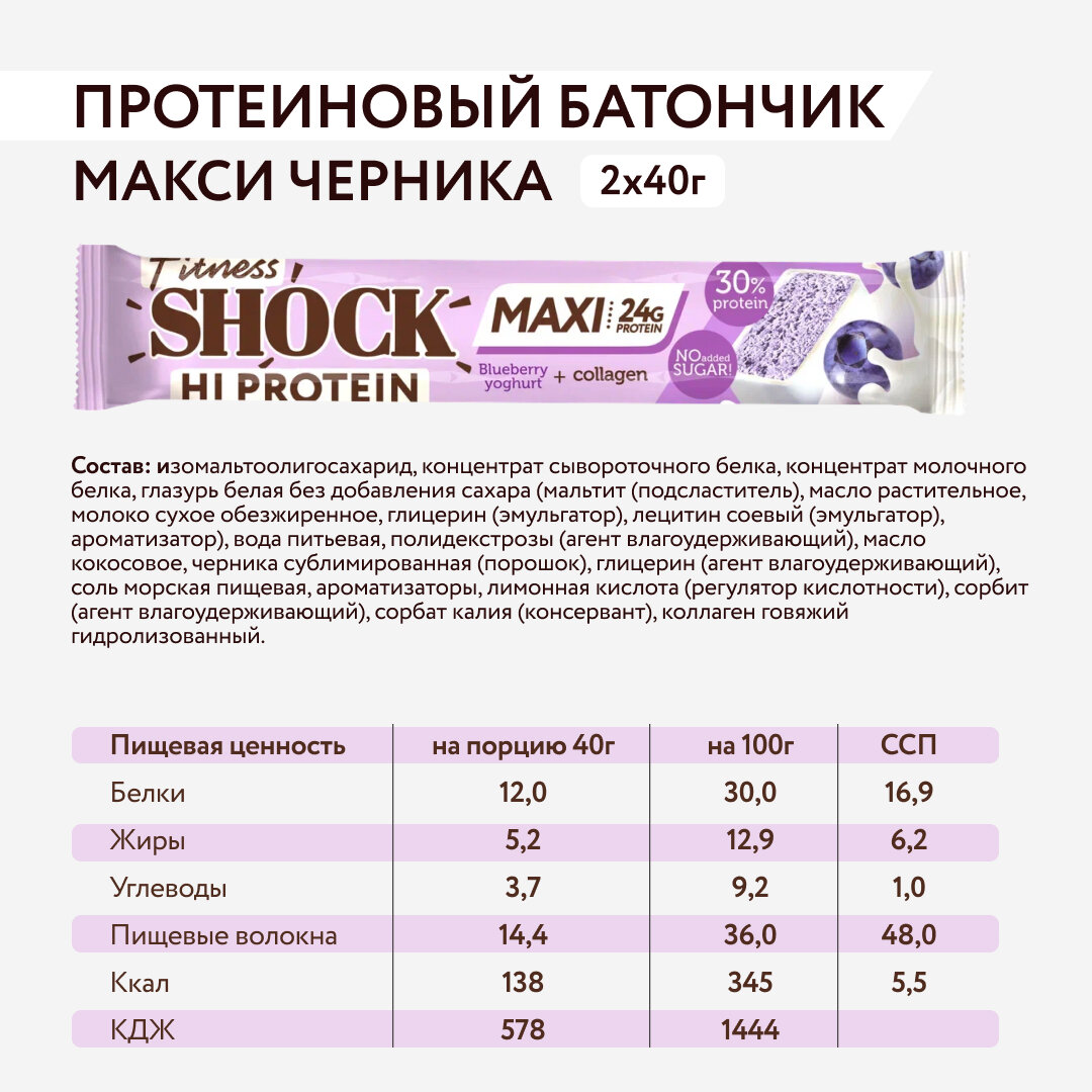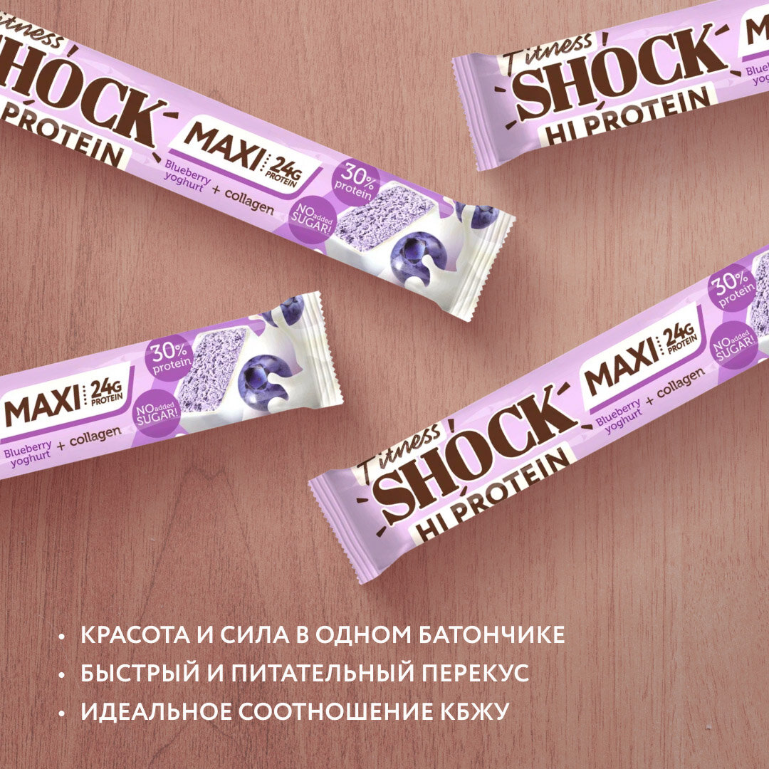 Протеиновые батончики без сахара MAXI Черничный десерт FitnesSHOCK 80гр 16 шт информация: