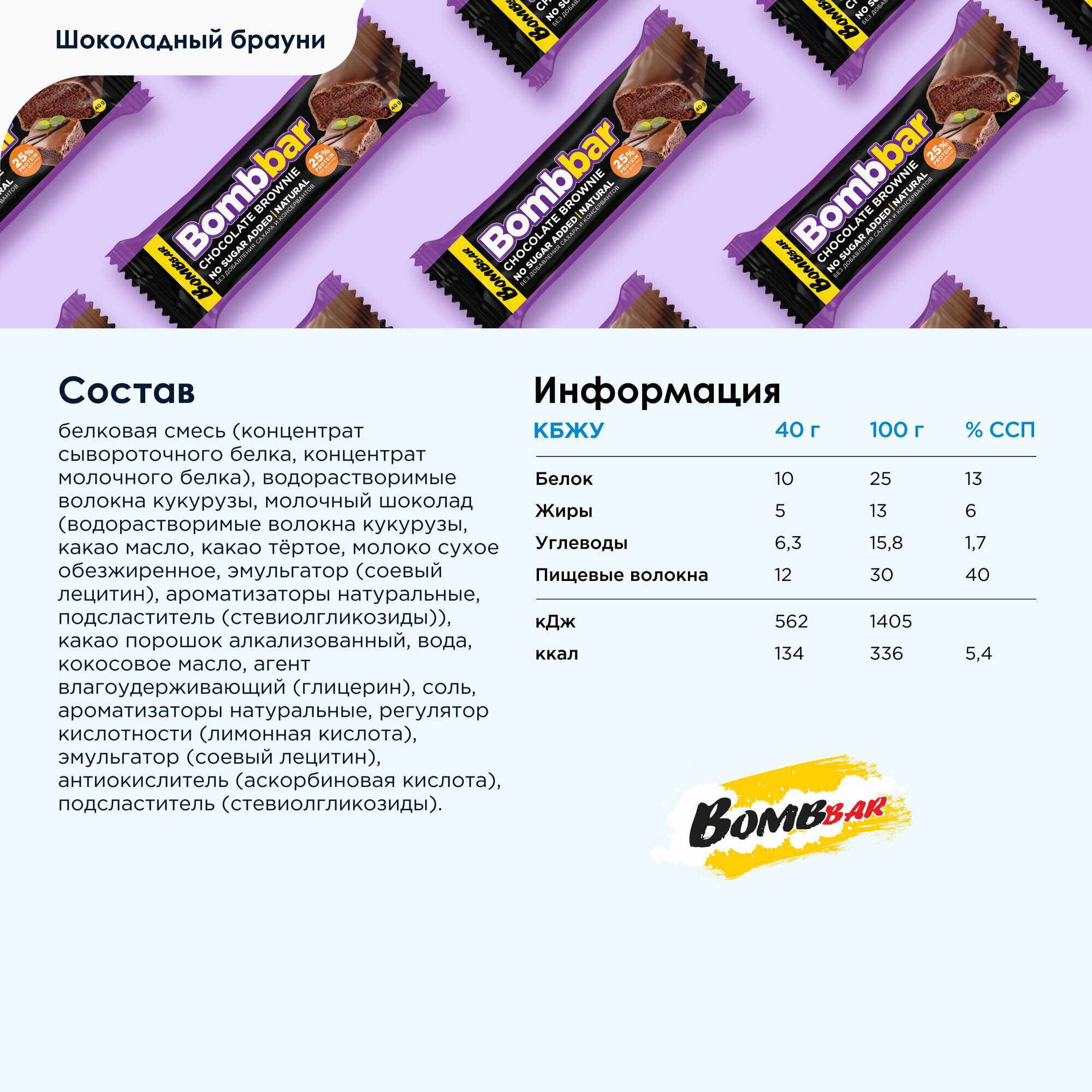 Bombbar Протеиновые батончики в шоколаде без сахара "Шоколадный брауни", 30шт х 40г информация: