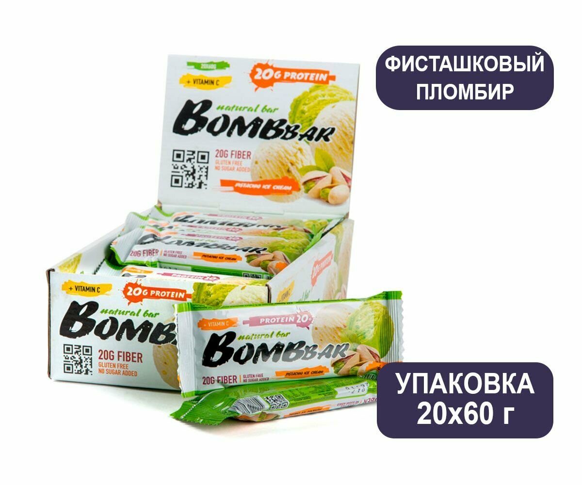 10 цен на BombBar протеиновый батончик 60 г, 20шт (Фисташковый пломбир)