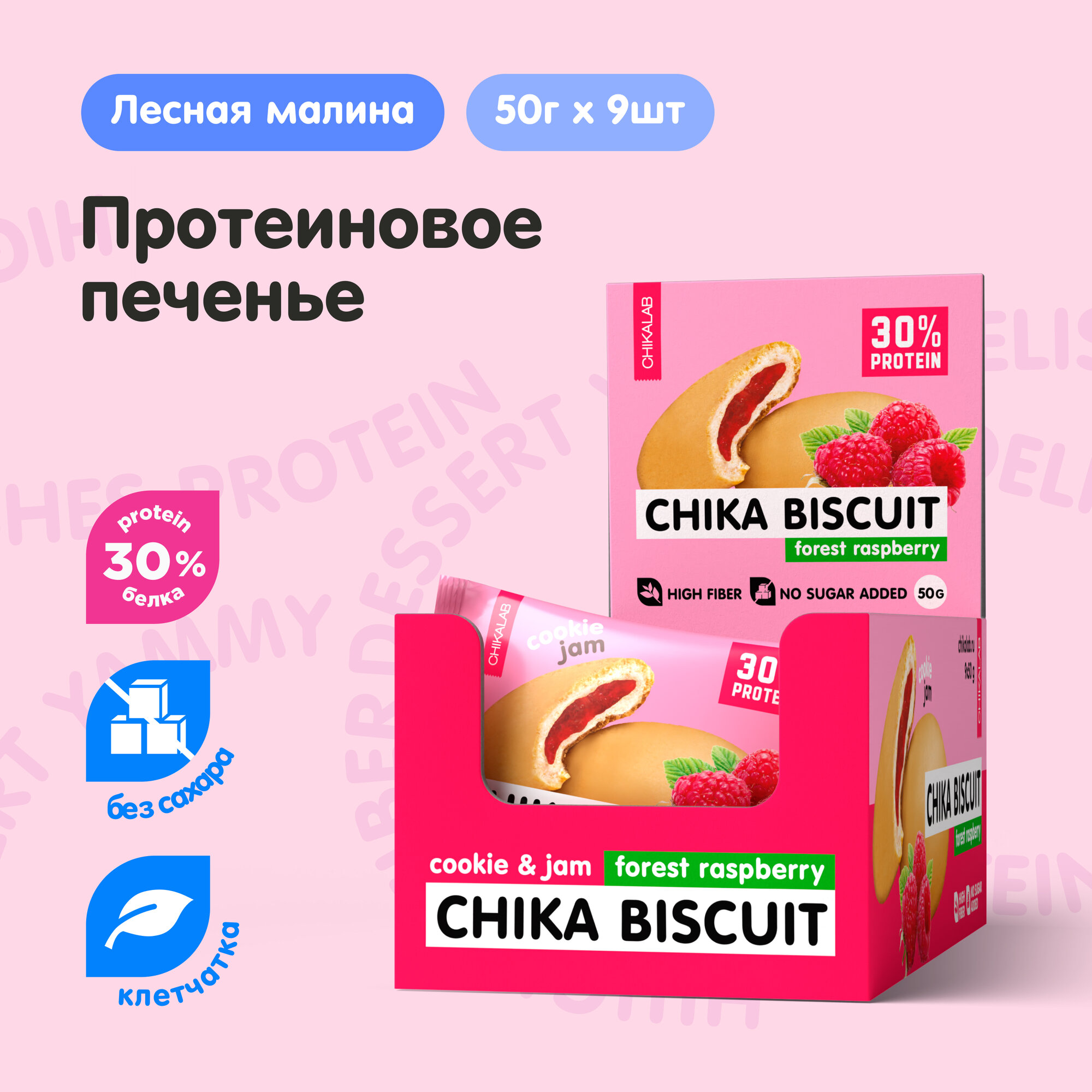 10 цен на Протеиновое печенье CHIKA BISCUIT без сахара с начинкой "Лесная малина", 9шт х 50г