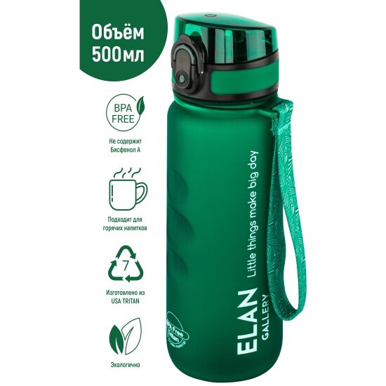 Бутылка для воды спортивная, для холодных и горячих напитков 500 мл Elan Gallery Style Matte,темно-зеленая 1 229 ₽