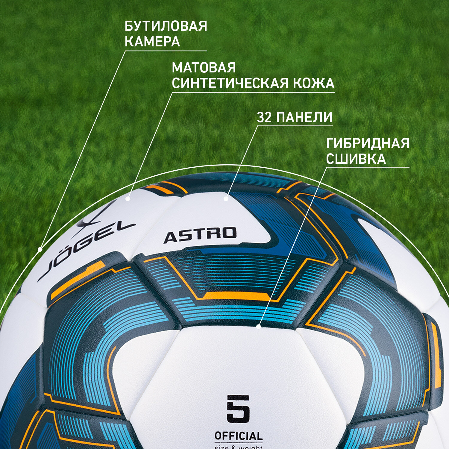 Мяч футбольный Jogel Astro матчевый, размер 5, цвет белый/синий/оранжевый информация: