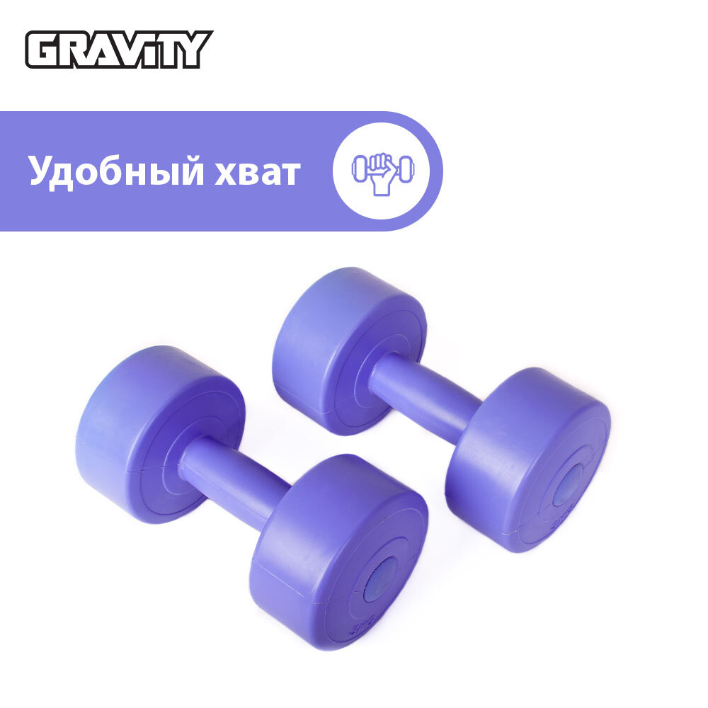 Виниловые гантели Gravity, круглые, 3 кг, пара, сиреневый информация: