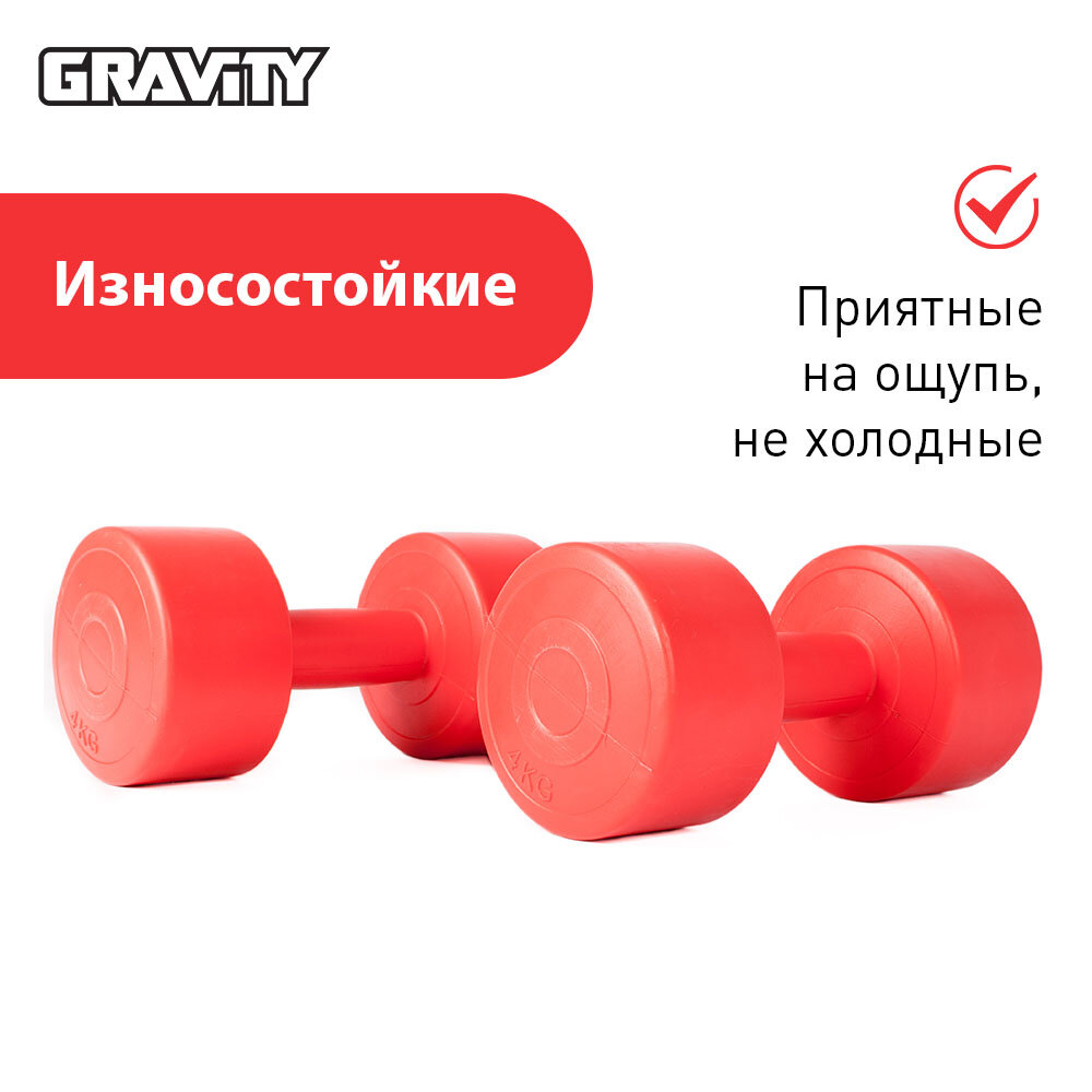 10 цен на Виниловые гантели Gravity, круглые, 4 кг, пара, красный