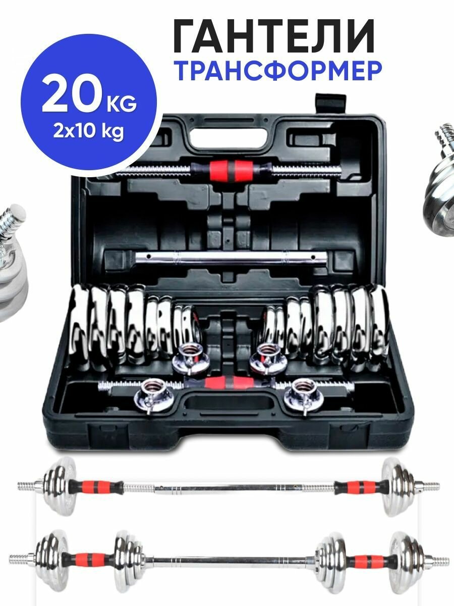 10 цен на FitnessLive Набор гантелей+штанга . Гантели разборные+штанга в кейсе 20 кг хром (2х10кг)