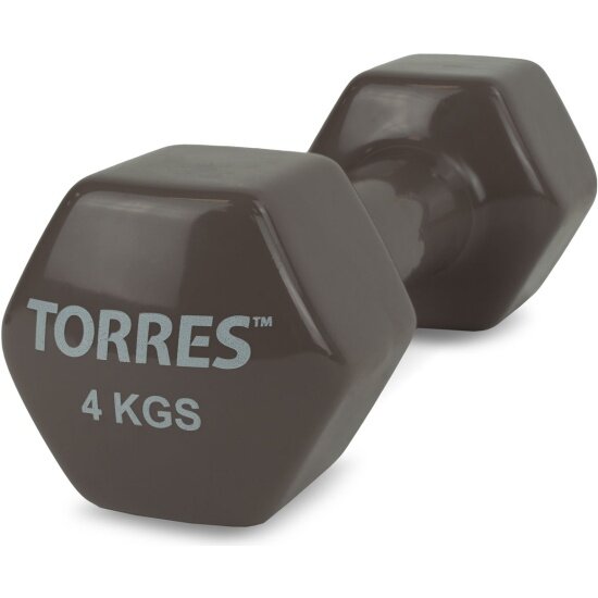 Гантель Torres PL522206 4кг, металл в виниловой оболочке, форма шестигранник, темно-серый информация: