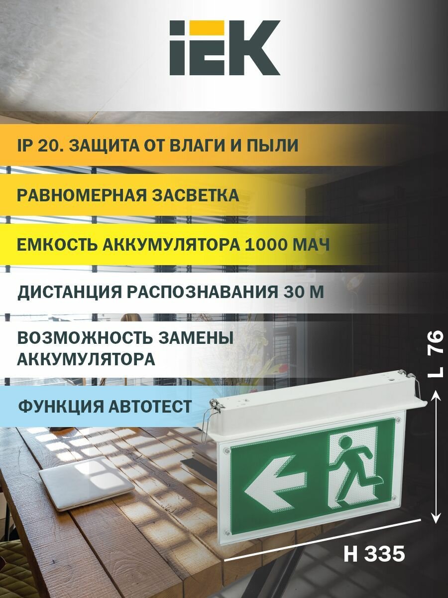 Светильник аварийного освещения IEK 3W Выход-Exit 1.5ч светодиодный IP20 зеленый/серый